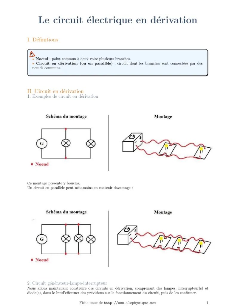 La branche principale qui est la branche comportant le générateur du circuit électrique... Un circuit éléctrique en dérivation comporte: • la branche principale qui est la branche qui contient le générateur du circuit électrique, et • les branches dérivées … Un circuit éléctrique en dérivation comporte: